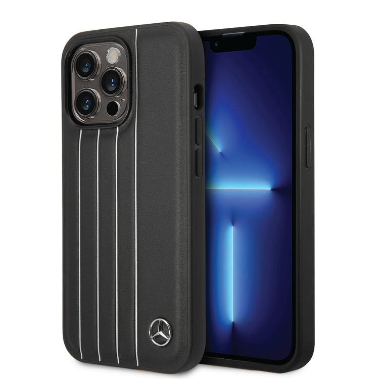 CG MOBILE Mercedes-Benz Genuine Leather Case With New UrbanIII Pattern, Compatible w/ 14 Pro Max (6.7") Protective Cover, Drop Protection, Wireless Charger Compatibility - Black