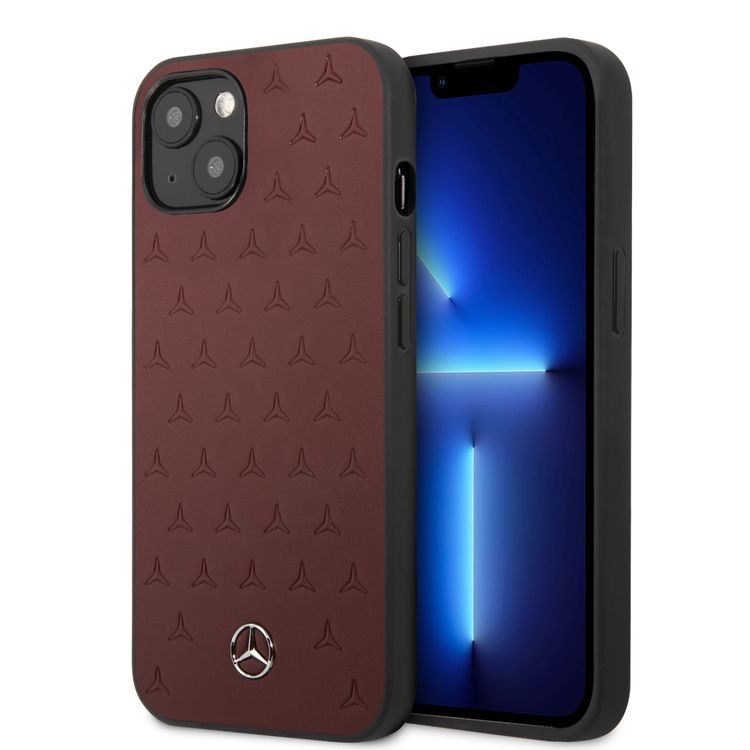 CG MOBILE Mercedes Benz Genuine Leather Hard Case Quilted Stars Pattern Metal Star Logo Compatible for iPhone 13 Pro Max (6.7") Easy Access to All Ports, Anti-Scratch, Shock Absorption Back Cover Suitable with Wireless Charging Officially Licensed