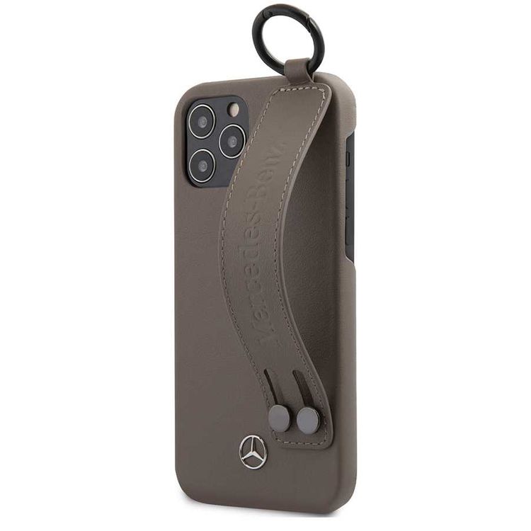 سي جي موبايل جراب من ميرسيدس بينز من الجلد حزام يد متوافق مع ايفون 12 بروماكس (6.7 بوصة) مقاوم للصدمات والخدش ، سهل الوصول إلى جميع المنافذ ، غطاء خلفي للحماية من السقوط مناسب مع شواحن لاسلكية مرخصة رسميًا - بني