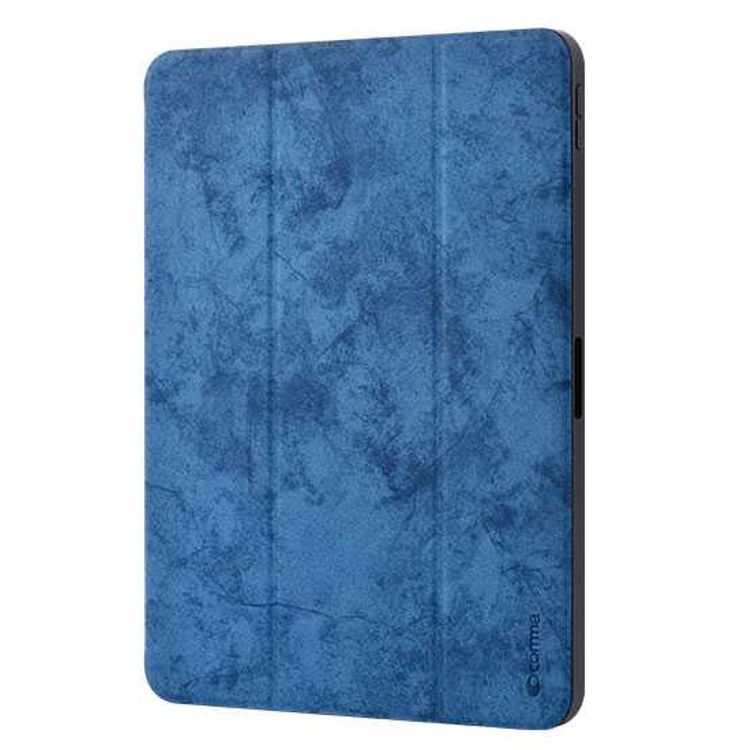 Devia Leather Case with Pencil Slot Compatible for Apple iPad Pro 12.9" ( 2018 ) Elegant & Slim Design 360° Full Protection Case - Three Fold Flip Stand Protective Cover - Blue