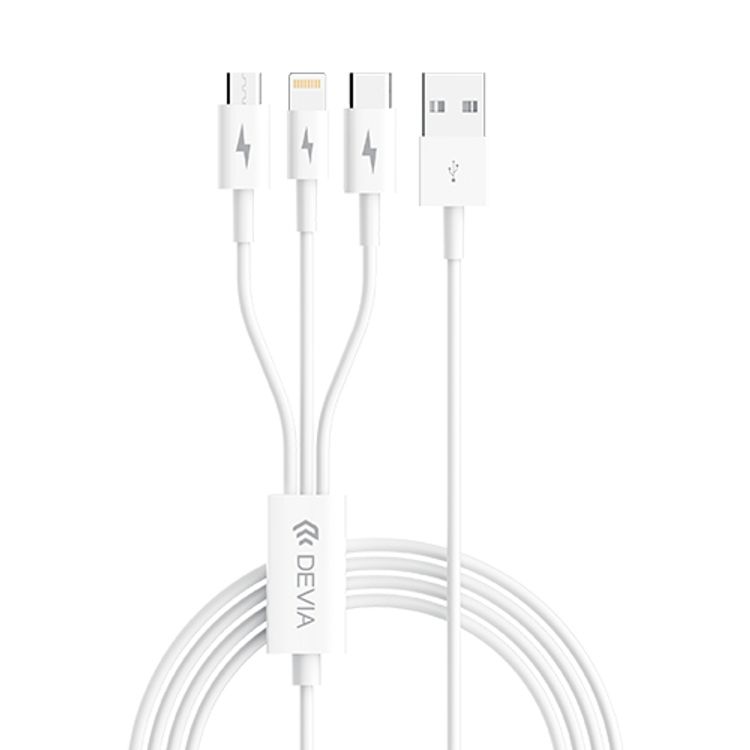 ديفيا 3 في 1 كبل 1.2متر ، متوافق مع نوع لايتنينج، تايب - سي & مايكرو ، اللدائن الحرارية (TPE) وعملية هجينة أكريلونيتريل بوتادين ستايرين (ABS) - أبيض