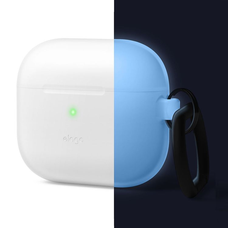 ايلاغو كفر معلق لي ايربودز 3 مرخص بشكل رسمي مع غطاء واقٍ مقاوم للسقوط ومقاوم للغبار وامتصاص مع حافظة تعليق لسماعات ابل ايربوز برو , علبة الشحن اللاسلكي - اللون - ازرق ليلي متوهج