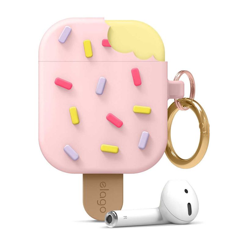 Elago Ice Cream Case Compatible with Airpods 1 & 2, 3D Design, Premium Silicone, Fits Perfectly, Drop Resistant, Shock Resistant, Supports Wireless Charging, Durable - Lovely Pink