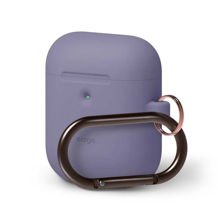 إيلاجو جراب من السيليكون مع سلسلة مفاتيح متوافقة مع جراب شحن لاسلكي من ابل ايربودز 1/2 ، ليد أمامي مرئي ، طلاء مضاد للانزلاق من الداخل ، سيليكون ممتاز ، رمادي ارجواني