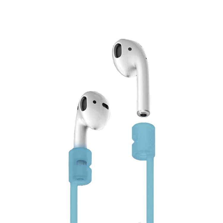 حزام سيليكون من إيلاجو لأجهزة آبل إيربودز الجيل 1/2، للحفاظ على الإيبودز بالقرب أثناء الأنشطة الخارجية، كابل سهل التخزين - اللون الأزرق المتوهج في الظلام.