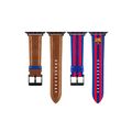 فرقة جلدية أصلية لنادي برشلونة لساعة آبل 49 مم، مصنوعة يدويًا من مواد فاخرة، صديقة للبشرة، نوع الإغلاق دبوس & توك، متينة وناعمة - خطوط زرقاء وقرمزية.