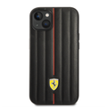 حقيبة فيراري جلدية مع خطوط منقوشة وشعار درع أصفر - آيفون 14 - أسود