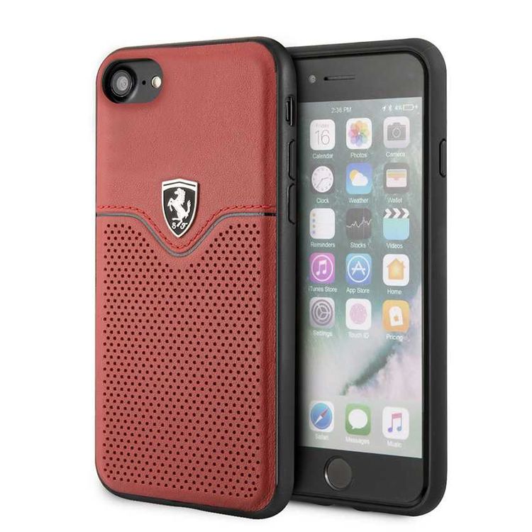 كفر فيراري من الجلد الصلب لهاتف iPhone SE 2 - أحمر