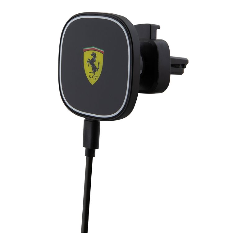 شاحن سيارة فيراري ماج سيف مع كابل USB-C، طاقة 15 وات، مصنوع من مادة ABS والألومنيوم، شحن سريع، شاحن لاسلكي مغناطيسي، ضمان آمن، حماية من الحرارة الزائدة، وضع أفقي ورأسي قابل للاستخدام، تعديل الاتجاه لأعلى ولأسفل 15 درجة - أسود