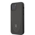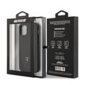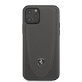 جراب صلب من الجلد الأصلي Off Track من Ferrari مع جلد مثقب بخيوط منحنية وجلد متباين لهاتف iPhone 12/12 Pro (6.1 بوصة) - رمادي داكن