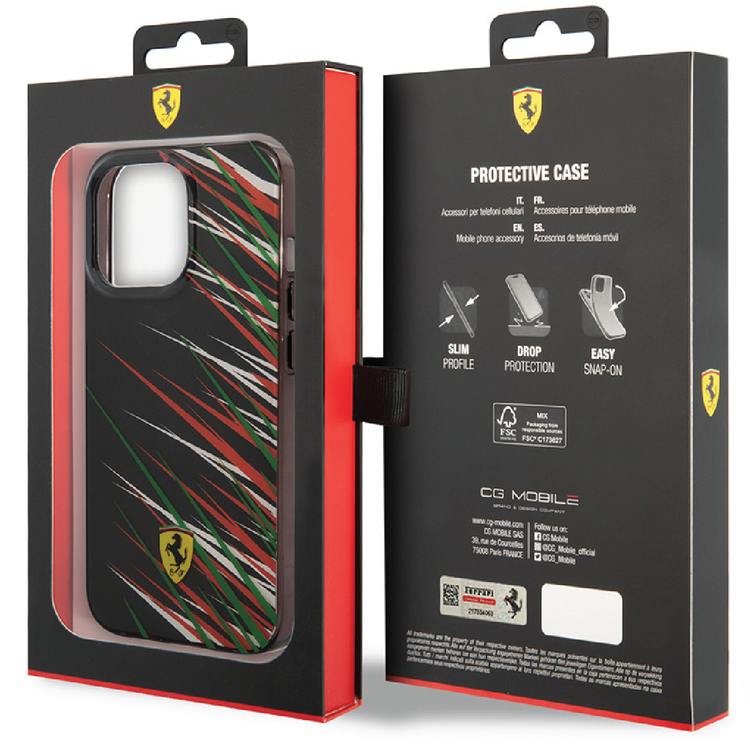 Ferrari PC/TPU Case with Double Layer Grass Print iPhone 14 Compatibility - Black