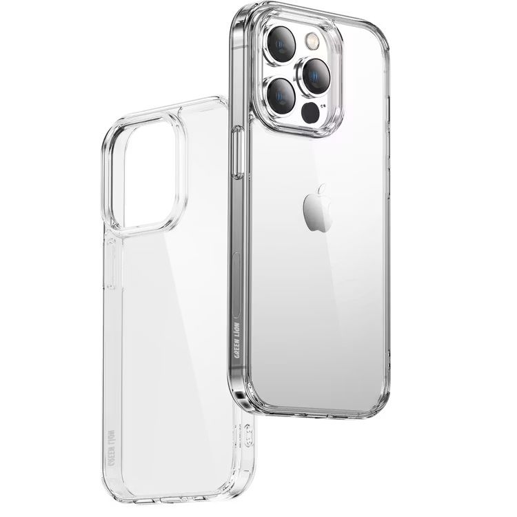 غطاء شفاف للهاتف الآيفون 14 برو ماكس من Green Lion، حماية ضد السقوط، حماية مضادة للميكروبات، مقاومة عالية للخدوش، مضاد للإصفرار، حماية للكاميرا، تصميم نحيف - شفاف