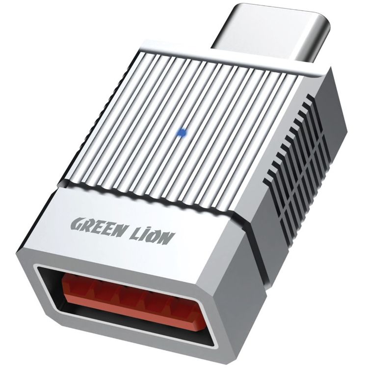 محول OTG 3.0 من جرين ليون 2 في 1، من USB-A إلى USB-C، متوافق على نطاق واسع، بسرعة نقل عالية تصل إلى 10 جيجابت في الثانية، غلاف من سبيكة الزنك، للاستخدام طويل الأمد، توفير طاقة بقوة 120 واط - باللون الرمادي