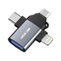 محول Green Lion 3 في 1 OTG مع أنواع موصلات Lightning و Micro و Type-C و USB-A، متوافق على نطاق واسع، محمول وخفيف الوزن، جاهز للاستخدام، نقل بيانات سريع - رمادي