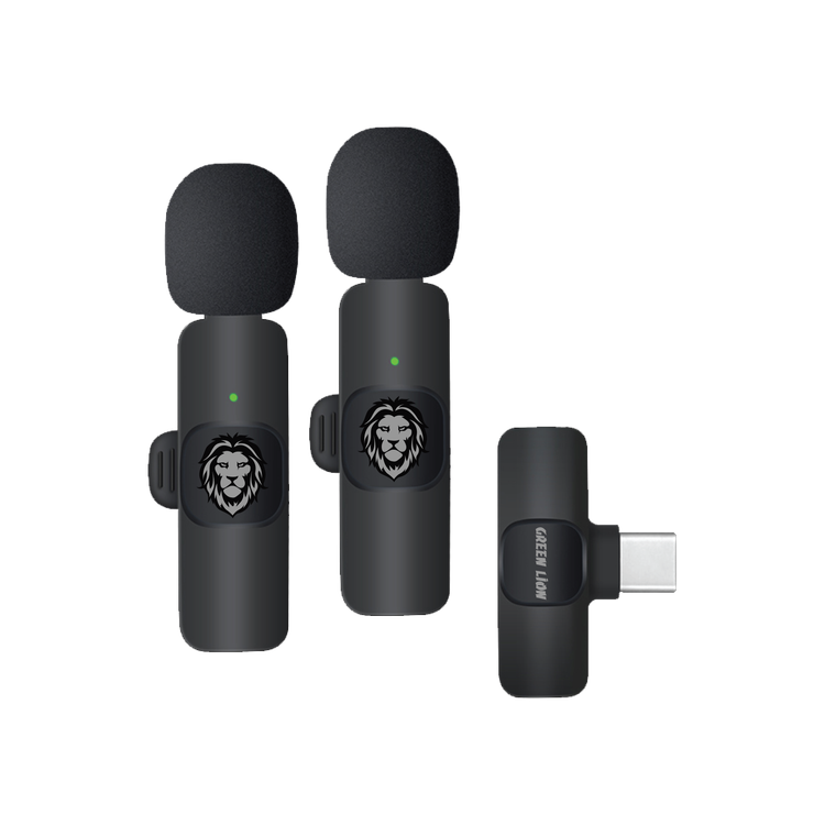 مايكروفون لاسلكي Green Lion 3 في 1 مع مدى 20 متر، عالي الحساسية، سعة بطارية 60mAh، عمر بطارية من 5-6 ساعات - لون أسود