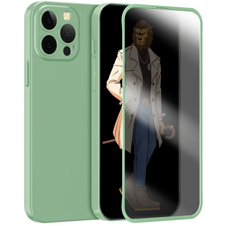 عبوة حماية جرين ليون 360° كارسكا بلس مع حقيبة PC وواقي شاشة الخصوصية لجهاز آيفون 13 برو، مقاومة للخدوش وبصمات الأصابع، حماية كاملة 360° - لون أخضر فاتح