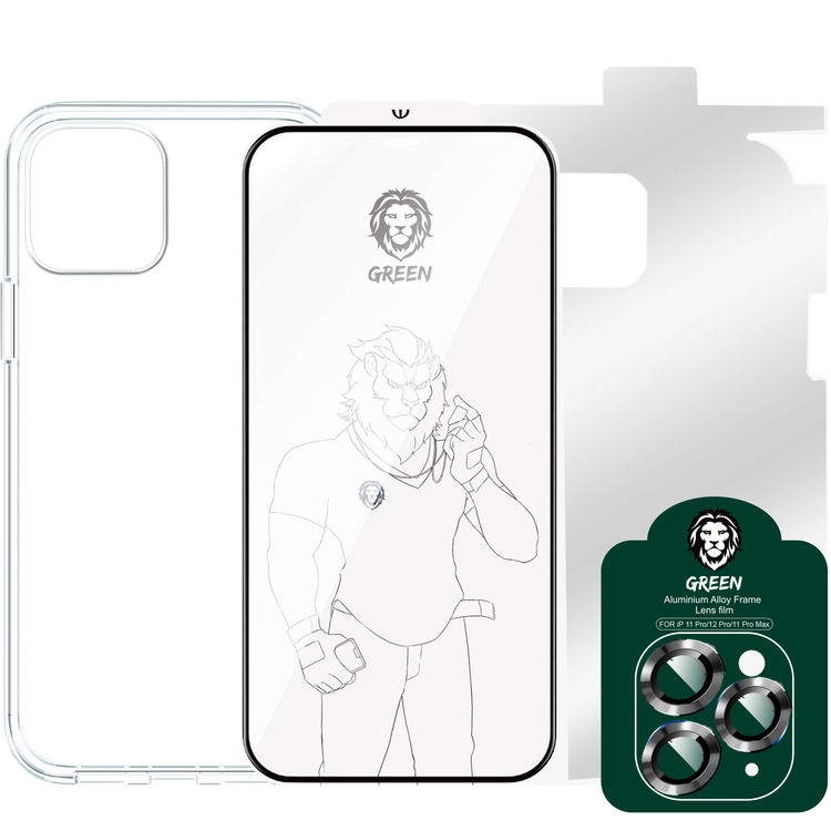 حزمة حماية من غرين 4 في 1 360 درجة ، فيلم عدسة الكاميرا + جراب إسقاط مقاوم للصدمات + واقي نانو عالي الدقة + زجاج ثلاثي الأبعاد حافة مدرعة ، حماية كاملة 360 ، مضاد لبصمات الأصابع ، خالٍ من الفقاعات ، وغطاء خلفي مضاد للخدش متوافق مع ايفون 12 برو ماكس ( 6.7 بوصة )