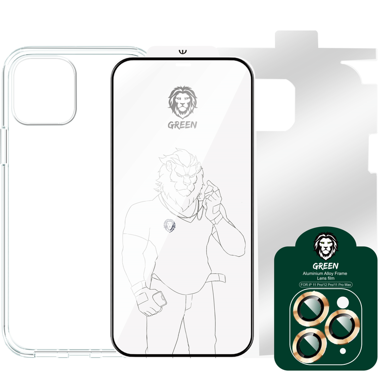 حزمة حماية من غرين 4 في 1 360 درجة ، فيلم عدسة الكاميرا + جراب إسقاط مقاوم للصدمات + واقي نانو عالي الدقة + زجاج ثلاثي الأبعاد حافة مدرعة ، حماية كاملة 360 ، مضاد لبصمات الأصابع ، خالٍ من الفقاعات ، وغطاء خلفي مضاد للخدش متوافق مع ايفون 12 برو ماكس ( 6.7 بوصة )