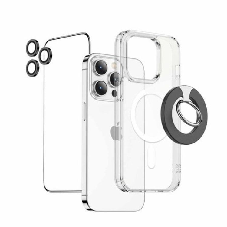 حزمة حماية الأسد الأخضر 4 في 1 - شفاف - iPhone 15 Pro