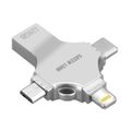 محرك أقراص فلاش USB 4 في 1 من Green Lion بسعة 128 جيجابايت، وموصلات USB-A وUSB-C وmicro USB وLightning - فضي