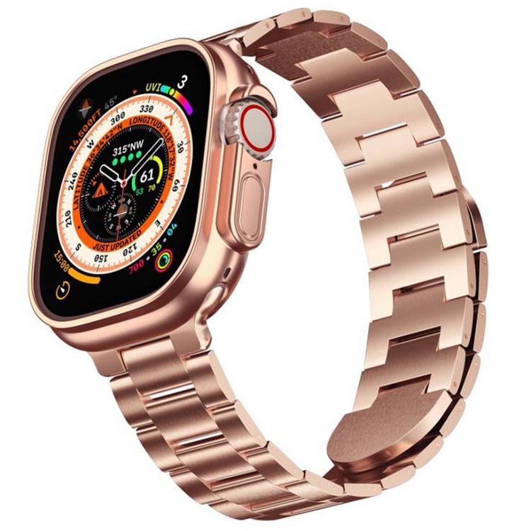 حزام ساعة Green Lion Acero Correa لساعة أبل 42/44/45/49 ملم، مصنوع من الفولاذ المقاوم للصدأ، تركيب سهل، مريح ويدوم طويلاً، تصميم أنيق - لون ذهبي وردي.