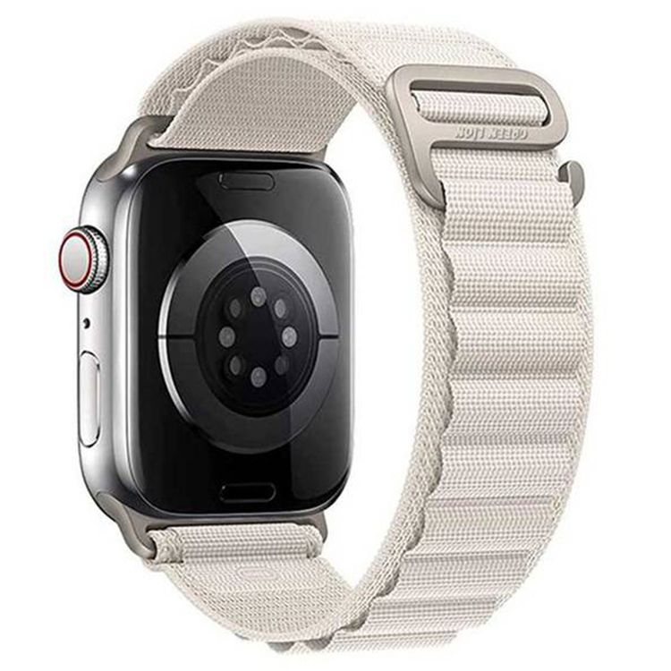 حزام نايلون حلقة ألبينية أخضر للساعة الذكية، مريح للارتداء، مصنوع من مواد فائقة الجودة، متوافق مع ساعة أبل 42/44/45/49 ملم، متوفر بعدة ألوان - أبيض