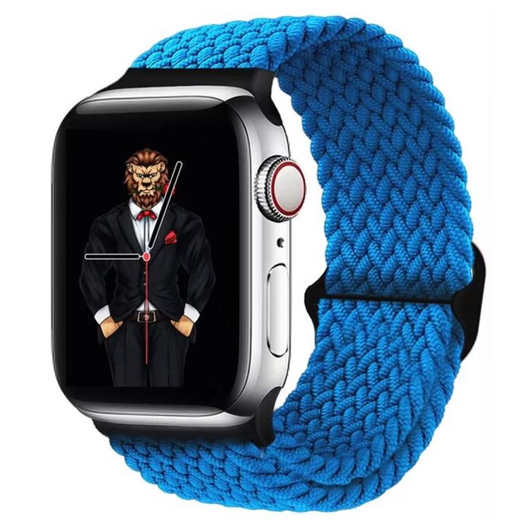حزام ساعة Green Lion Braided Solo Loop لساعة Apple Watch بمقاسي 38/40 ملم، حزام قابل للتعديل، ناعم ومريح، سهل التركيب - أزرق.