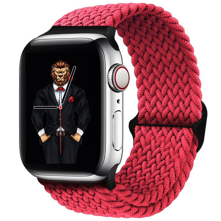 حزام ساعة مضفر طراز "Green Lion Braided Solo Loop" لساعة آبل مقاس 38/40 مم، حزام قابل للتعديل، ناعم ومريح للارتداء، سهل التركيب - أحمر