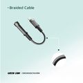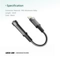 محول سماعة رأس Green Lion بموصل Lightning إلى مقبس صوت 3.5 مم، طول الكابل 12 سم، وظيفة تشغيل الموسيقى والمكالمات، عمر افتراضي لأكثر من 10,000 انحناء - أسود