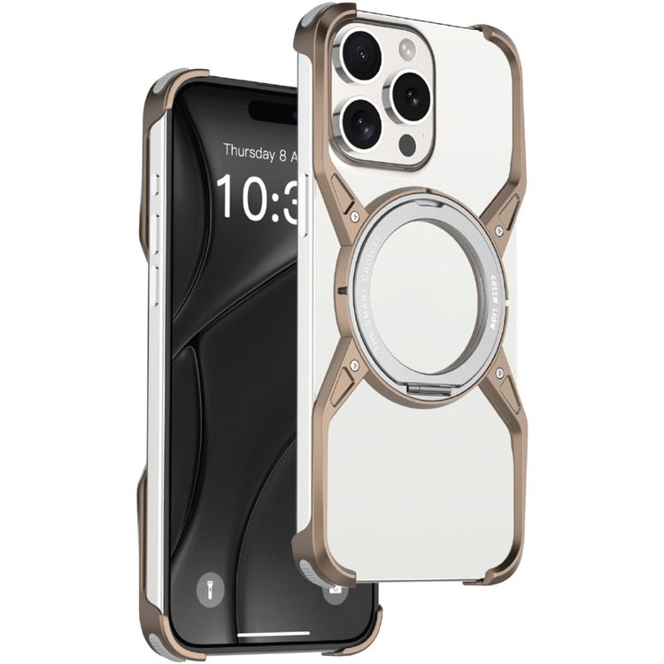 كفر حماية Green Lion Edge X MagSafe بدون إطار لهاتف iPhone 16 Pro، دوران 360 درجة، حواف مرتفعة، بدون إطار، تصميم حامل - تيتانيوم صحراوي