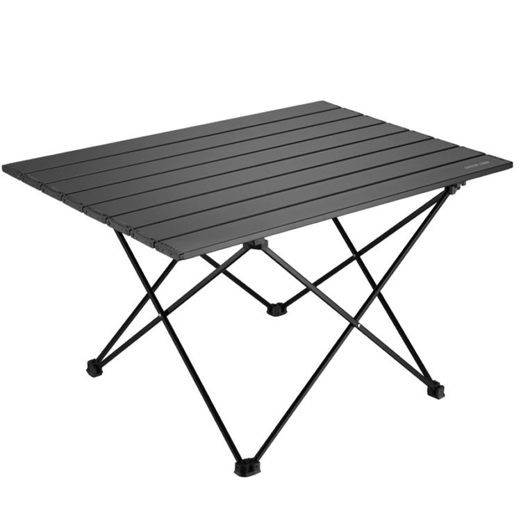 طاولة تخييم قابلة للطي من جرين ليون مع مادة سبائك الألومنيوم، تصميم خفيف الوزن، سعة تحميل 25 كجم، غطاء قدم مضاد للانزلاق، غطاء أمان مضاد للانزلاق، مقاومة للتآكل، سطح بتصميم نقش الخشب، ميزة تأمين آمن، سهلة التركيب - باللون الأسود.