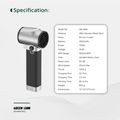 منفاخ توربو GB-186X من Green Lion بسعة بطارية 4000 مللي أمبير في الساعة، ومدة شحن 2.5 ساعة، ومدة عمل من 6 إلى 80 دقيقة، ومنفذ شحن تيار مستمر، ومادة طلاء ABS والسيليكون والمعادن - فضي