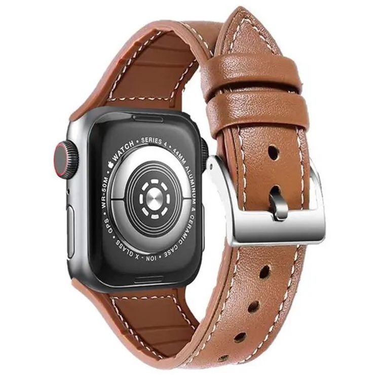 حزام ساعة جرين ليون من الجلد الأصلي لساعة أبل مقاس 44 ملم مع قفل إبزيم من الفولاذ المقاوم للصدأ، طول الحزام قابل للتعديل، سهل التركيب، تصميم خفيف الوزن، بدون تهيّج - بني اللون.