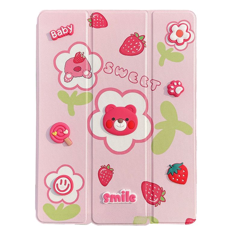 حافظة جلدية للأطفال GK-10 من Green Lion، تصميم خفيف الوزن، حماية من السقوط ومضادة للخدش، حامل أقلام، حامل متعدد ثابت، خامة ممتازة، تنبيه تلقائي، متوافق مع iPad Pro 13" 2024 - وردي