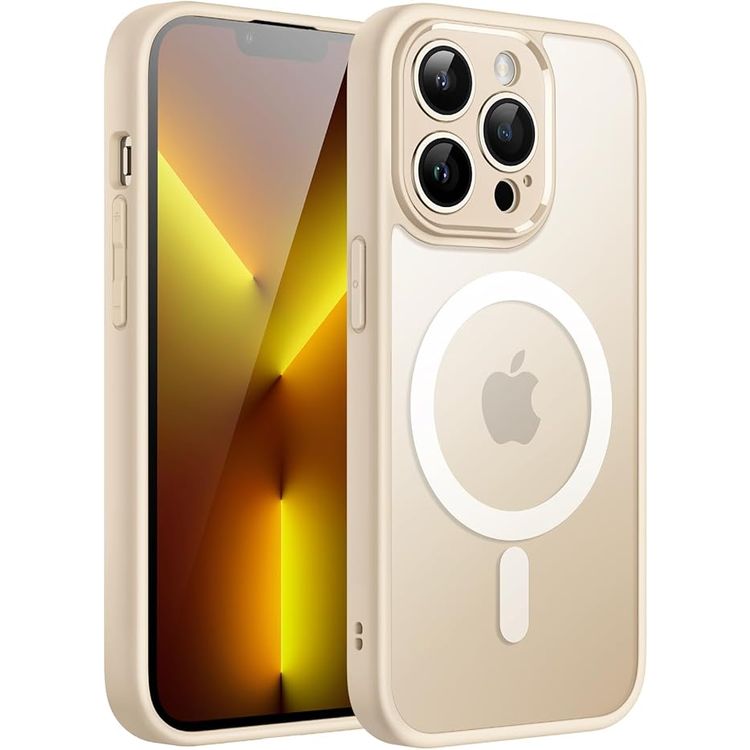 كفر ماج سيف من Green lion لهاتف iPhone 13 Pro (6.1 بوصة)، متين، لون ثابت، دقة مغناطيسية، إطار كاميرا معدني -ذهبي