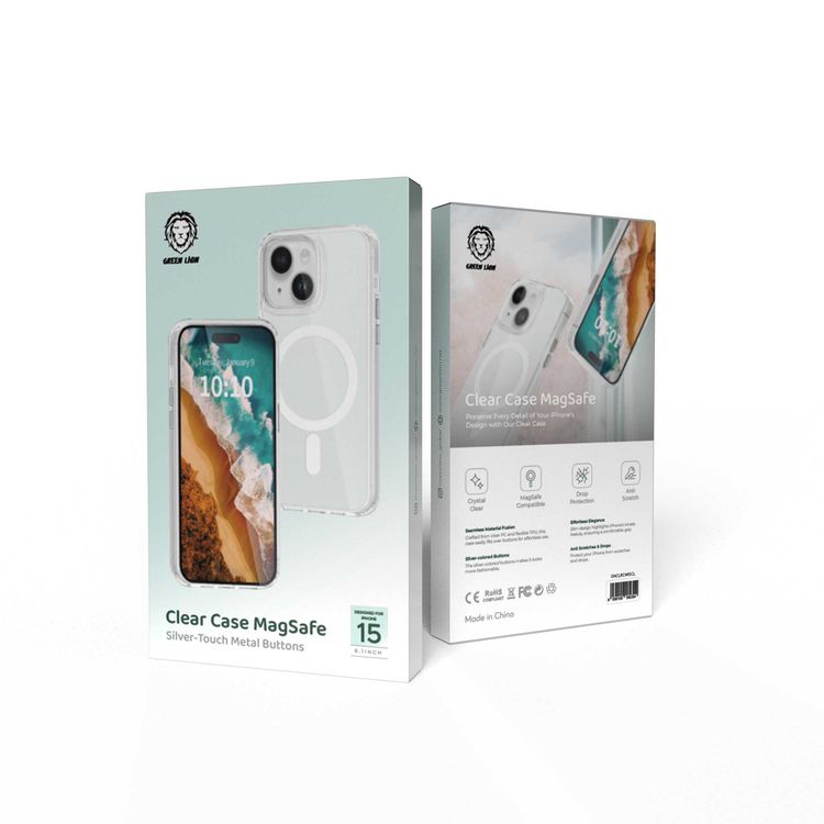 حافظة هاتف iPhone 15 من Green Lion لـ MagSafe مزودة بأزرار معدنية - صافي - ايفون 15
