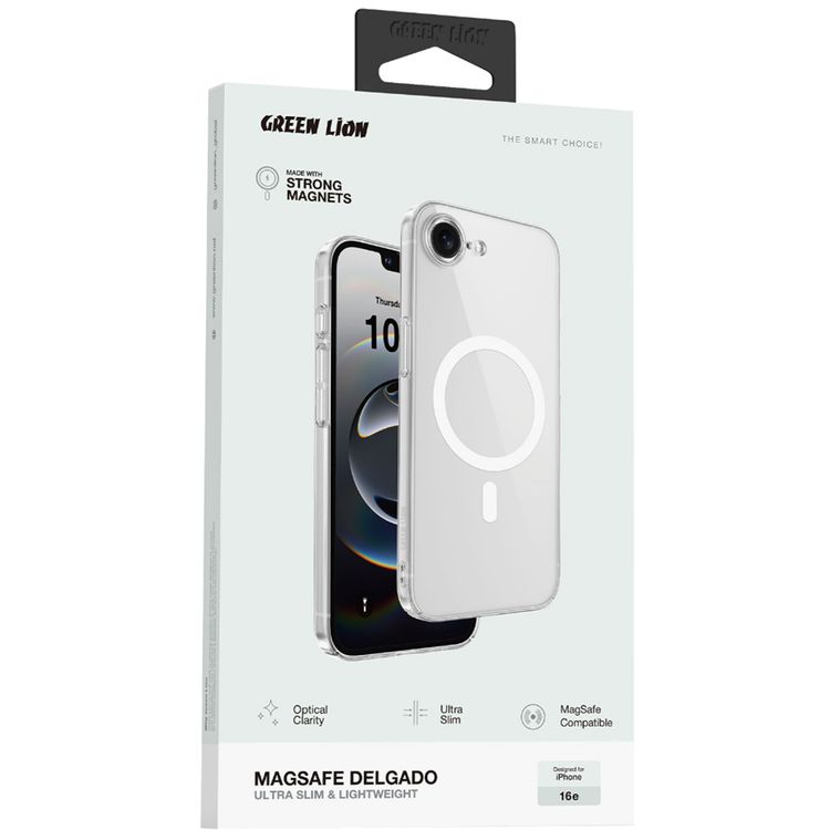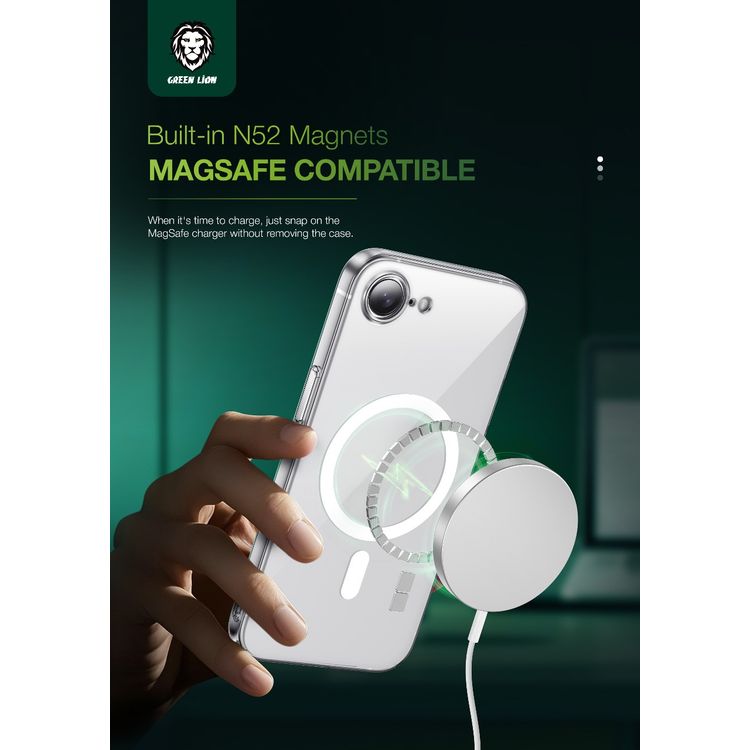 جراب Green Lion MagSafe Delgado لجهاز iPhone 16e بحواف مرتفعة، تصميم شفاف كريستالي، مغناطيسات N52 قوية، مصنوع من مادة TPU+PC صلبة، قبضة مريحة - شفاف
