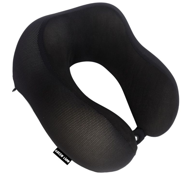 وسادة للرقبة من الفوم الميموري جرين ليون مع مادة البوليستر، تصميم محدث، خفيفة الوزن، قابلة للتنفس، مناسبة للتنقل اليومي - أسود