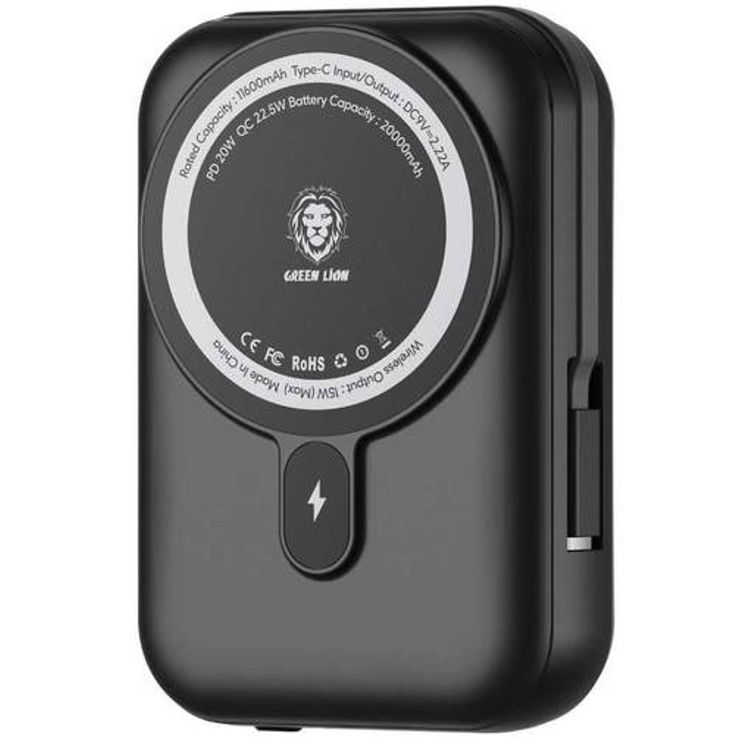 جرين لايون موناكو بنك طاقة MagSafe بسعة 20000 ملي أمبير في الساعة مع كابل Lightning مدمج، متوافق مع الشحن اللاسلكي، 22.5 وات PD & QC، مخرج لاسلكي 15 وات، شاشة LCD - أسود