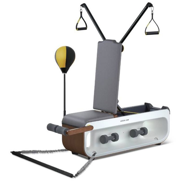 مقعد لياقة بدنية متعدد الوظائف من Green Lion مع أريكة جلدية، سعة 150 كجم، عجلات مدمجة، دمبل 3 كجم ×2، كرة ملاكمة رشيقة، حبال مقاومة 10 كجم ×2، حبال مقاومة 20 كجم ×2، صف دمبل، تمرين ضغط على المقعد، تمرين كابل متقاطع، دفع عكسي، تصميم مبتكر - رمادي