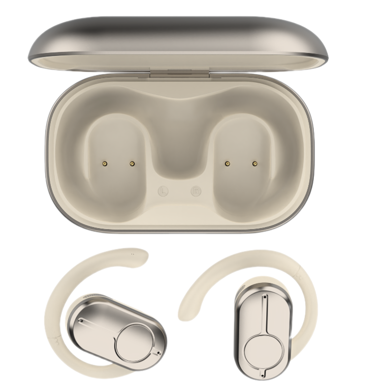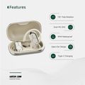 سماعات أذن Green Lion Ocean Plus مفتوحة مع ميكروفون مزدوج ENC، وقت تشغيل يصل إلى 6 ساعات، دوران حر 135 درجة، سعة بطارية علبة شحن 300 مللي أمبير/ساعة، وضع اللعب، زمن انتقال منخفض، وقت استعداد 180 ساعة، مقاومة للماء IPX4 - بيج