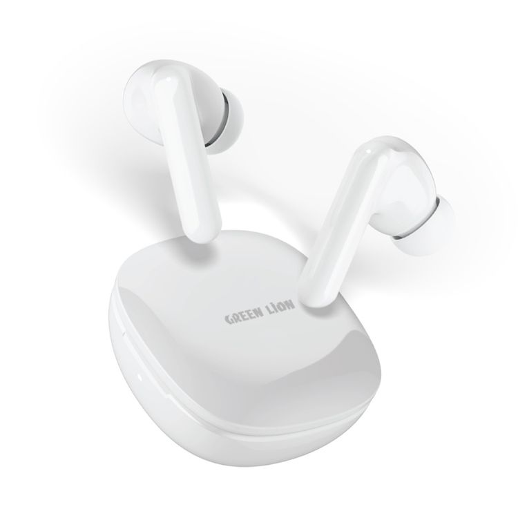 سماعات Green Lion Osaka اللاسلكية الحقيقية مع إلغاء الضوضاء الهجين، وضع المساعد الصوتي، التحكم باللمس، ميكروفون مزدوج ENC، نطاق انتقال 10 أمتار - أبيض