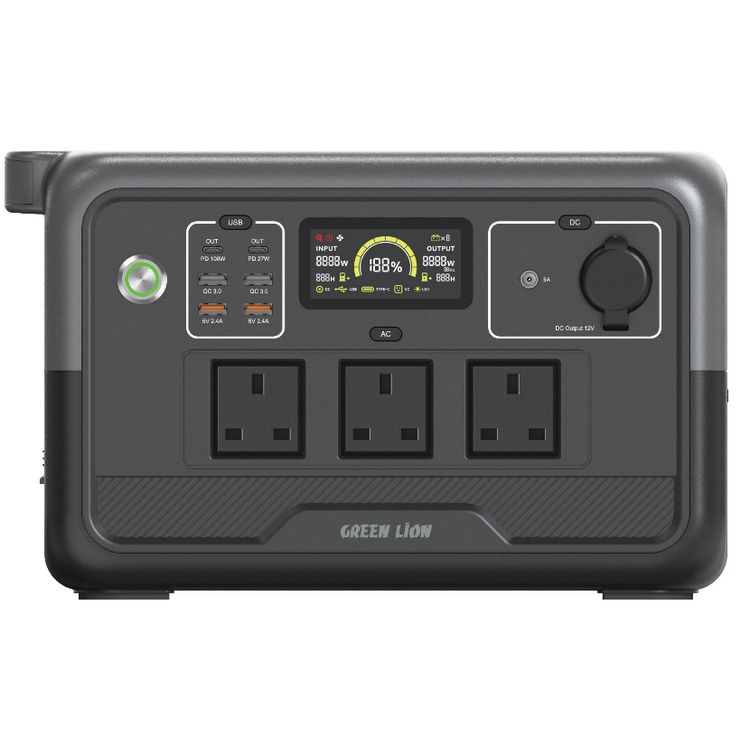محطة الطاقة Green Lion PGX800 بسعة بطارية 30000mAh، مع ضوء LED ثلاثي الوضعيات، وأمان متعدد الطبقات، وشاشة LCD كبيرة، ومدخل AC بقوة 600W، وType-C PD بقوة 100W - أسود.