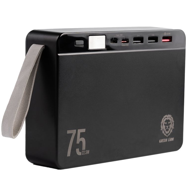 بنك الطاقة Green Lion Power Volt Mega سعة 75000 مللي أمبير، PD 20 وات، QC3.0 22.5 وات، 4 منافذ إخراج، منافذ إدخال من النوع C وMicro، بطارية ليثيوم أيون بوليمر، شاشة رقمية، - أسود - 75000mAh