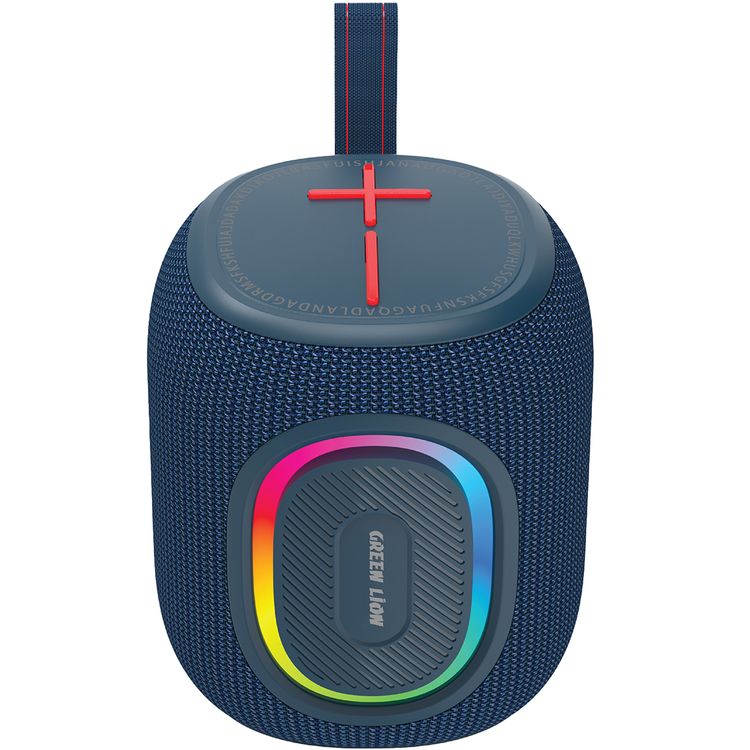 مكبر صوت لاسلكي بريستون من جرين ليون، سعة بطارية 1200 مللي أمبير في الساعة، وقت تشغيل 6-7 ساعات، منفذ شحن من النوع C، مقاوم للماء، ضوء RGB وتأثيرات إضاءة متعددة، مسافة بلوتوث 10 متر - أزرق