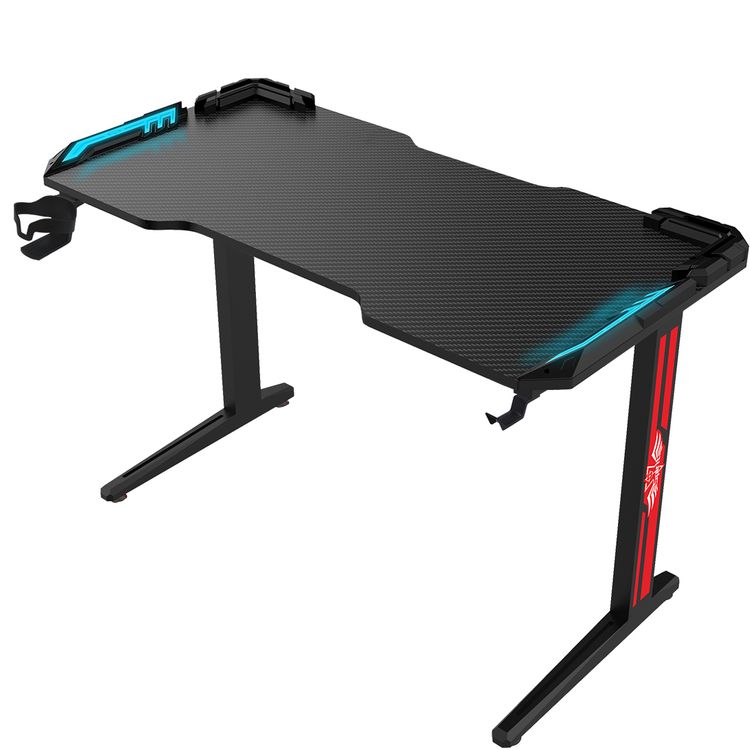 مكتب الألعاب Green Lion RGB مع أقدام غير قابلة للانزلاق قابلة للتعديل، قدرة تحمل تزيد عن 200 كجم، 7 أوضاع لونية، حامل أكواب، مقاوم للماء، زوايا مستديرة - أسود