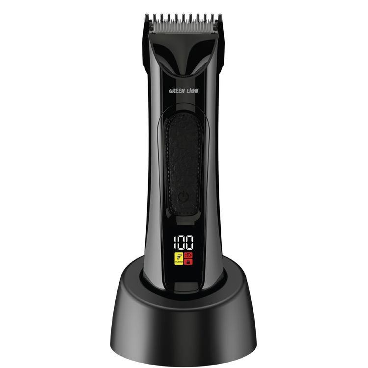 ماكينة تشذيب المناطق الحساسة من جرين ليون 2 مع سلكي ولاسلكي، مؤشرات LED للحالة، قاعدة تخزين، شحن Type-C، 2 أمشاط إرشادية، شاشة رقمية، ضوء موضعي - أسود