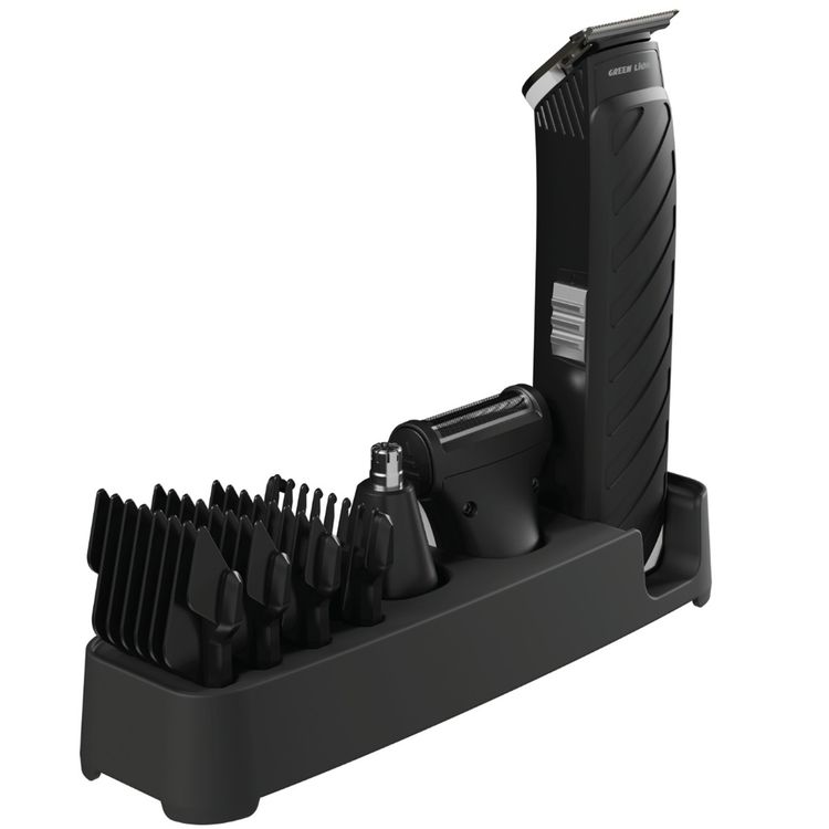 Green Lion Trim Core 3 مع رأس لتشذيب الشعر واللحية والأنف، بقبضة محكمة الملمس، قاعدة تخزين، شحن من نوع C، نطاق 7200 دورة في الدقيقة، مدة عمل تصل إلى 90 دقيقة، يعمل بالسلك واللاسلكي - أسود