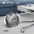 منظف سجاد الحلزون الأخضر الأسد مع وظيفة وضع الحرارة، قوة شفط 13 كيلو باسكال، سعة مياه نظيفة 2 لتر، سعة مياه متسخة 1.4 لتر، طول السلك 5 أمتار، قابس طاقة في المملكة المتحدة، خرطوم مرن 1.5 متر، مقاوم للماء - رمادي