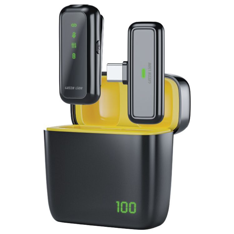 ميكروفون Green Lion SX5 لمنفذ Type C، ميكروفون متعدد الاتجاهات، وقت شحن من 1-2 ساعة، عمر بطارية يصل إلى 6 ساعات، نطاق نقل 20 متر، عرض رقمي - اللون أسود